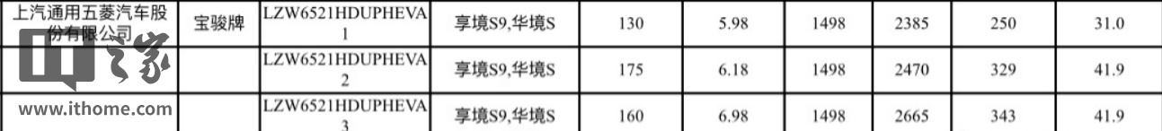 该车申报了三个插混版本,尾部写有“享境 S9”字样,但与此前放出的宝骏华境 S 汽车伪装图造型相同,可选装“华境 S”尾标;尺寸为 5235 x 1999 x 1800mm,轴距 3105mm,可选装上下车电动踏板。