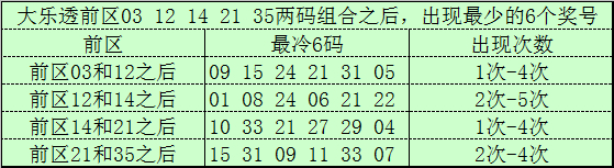 前区冷码统计:大乐透第25115期前区奖号为:03、12、14、21、35,截止第25115期历史上大乐透已经开出了2783期奖号了,在连续两码奖号中:
